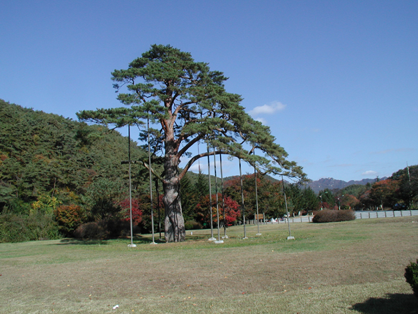 門前村の入り口にある有名な伝説の松。その昔(15世紀)世祖王がこの松の下を通りかかったときに、松が自ら枝を上げて王様の邪魔にならないようにしました。王はそれでこの松に「正二品松」という位を与えたと言うことです。