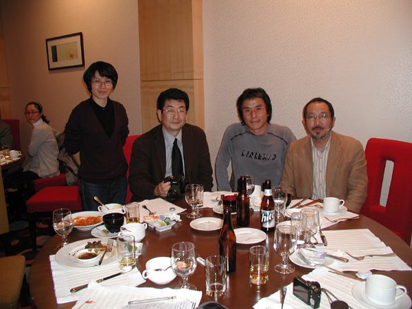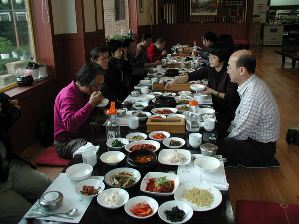 清州へ戻り、昼食は陣教授(下右)のアトリエの隣のレストランでした。
