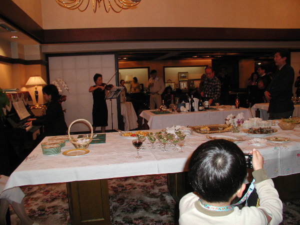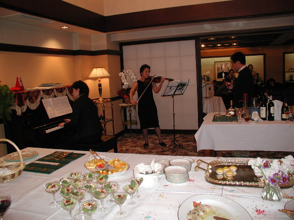 ヴァイオリンを演奏しておられるのは吉田先生の奥さんです。レセプションの料理もすべて奥さんの手作りなのだそうです。