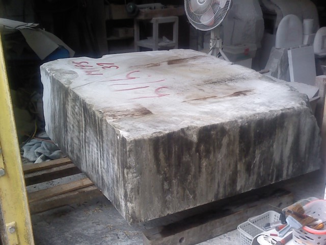 岐阜にある日本で唯一の大理石専門の会社でようやく見つかった大理石を、石探しの労をお願いしていた彫刻仲間の近持イオリ氏が、自分でトラックを運転して運んできてくれました。