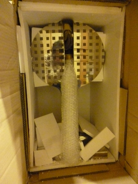 大きいので建てた状態では作業室に入らず、横倒しでの作業となりました。