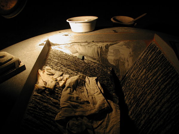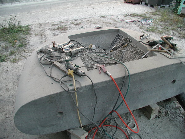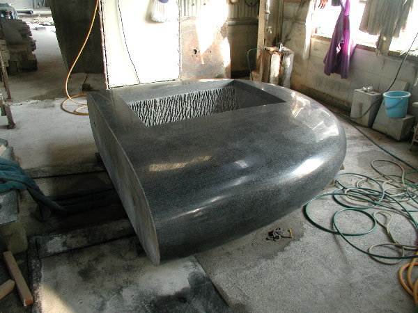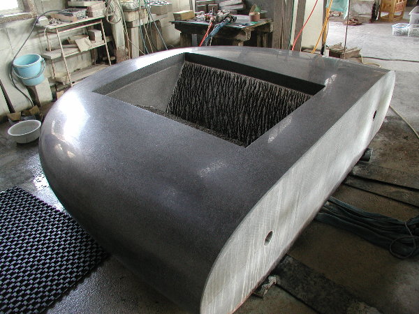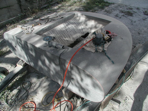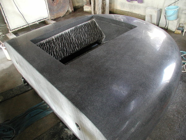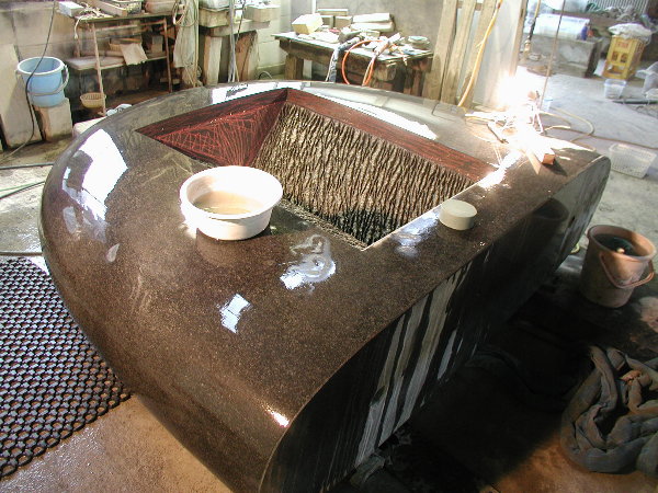 搬入が大変だったのと、私のエアー工具を石材店の使用環境に合わせての部品交換などに時間を取られ、研磨作業にかかったのはもう午後半ばでした。