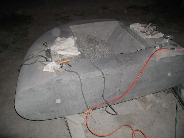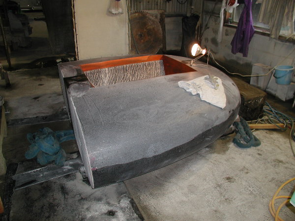 私の不在中に寺竹さんが表側のアール面を磨いて裏返しておいてくれました。