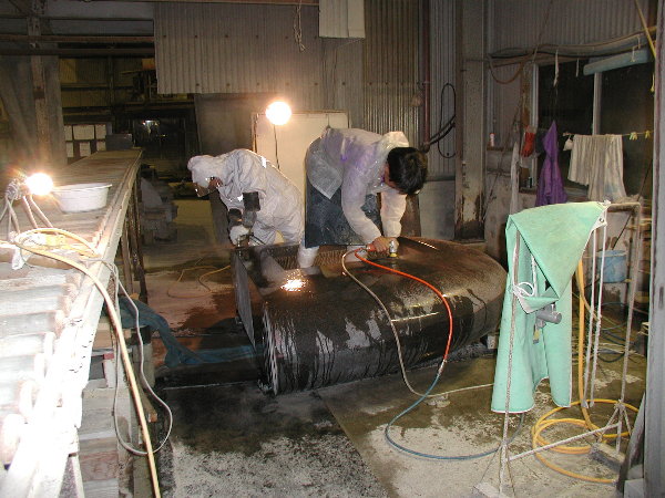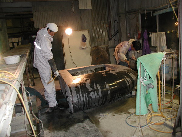 そして寺竹さんと一緒に裏側のアール面の研磨を始めました。