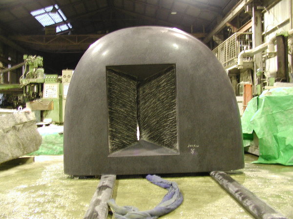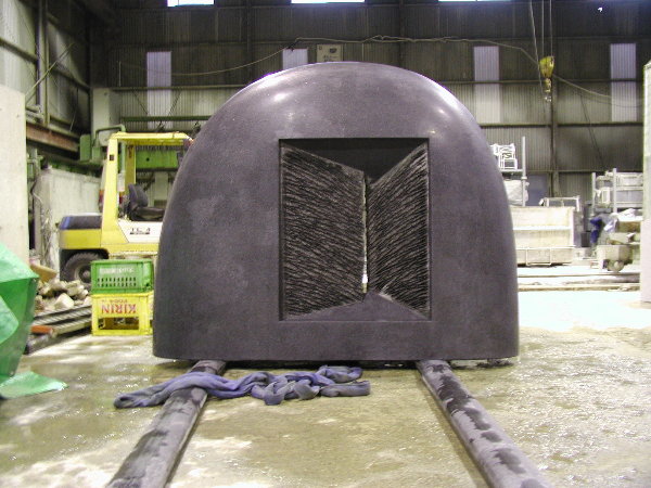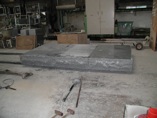 午前中に扉コーナーの面をきちんと出して、午後から石材店の研磨スペースに搬入しました。