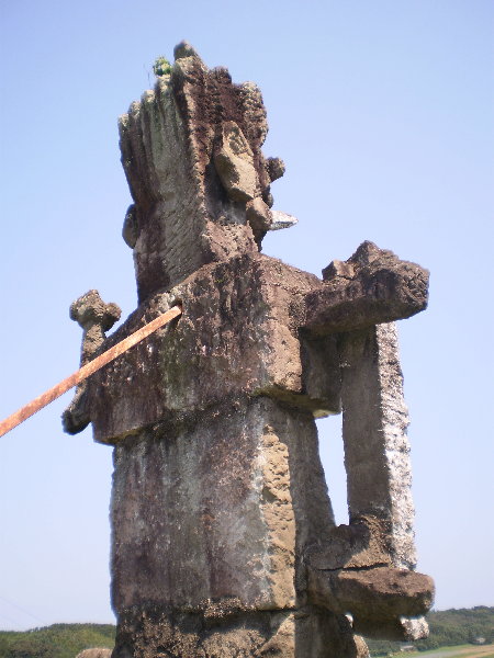 保存という視点で見ると、この粗造りの石像は実に危なっかしいものです。