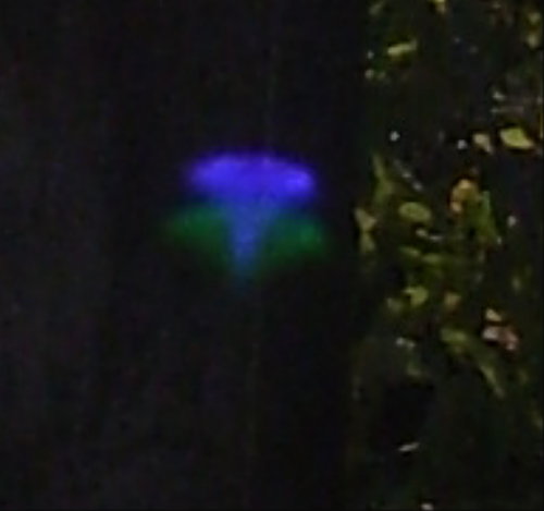 最後から2番目の観音像の横姿の暗がりの下部に、何か青いものが光っています。
