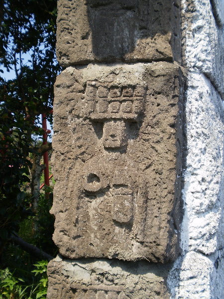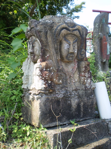 この石像は先年の大雨で屋根が陥没するまで、本堂の屋根の真ん中に鬼瓦として載っていたものです。