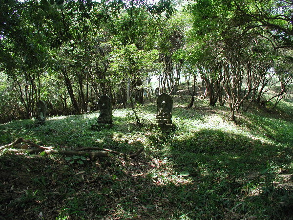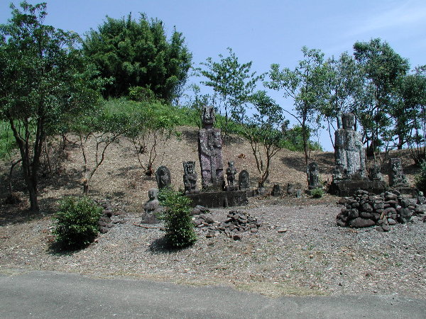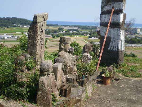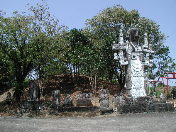 石像の背後にあるなだらかな低い小山はすべて古墳です。