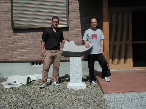作品設置を手伝っていただいた二人のうち、右がこの敷地提供者の笹渕氏、左が中町名店会会長の小澤君です。