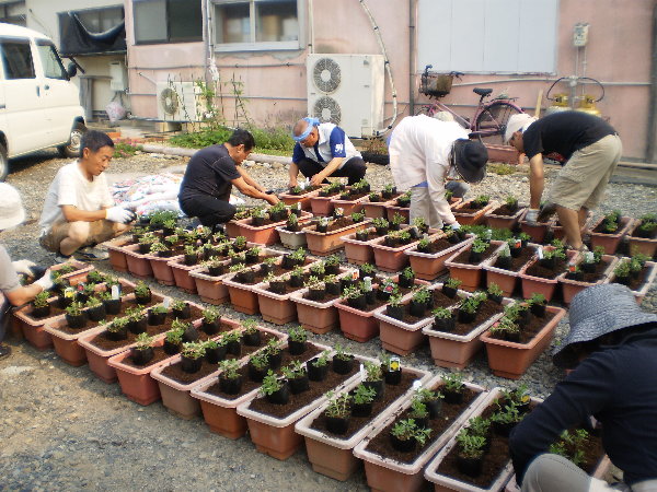 ☆今朝は中町のフラワーポットの花の植栽と、ポケットパークの清掃がありました。