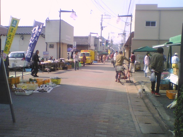回を重ねるごとに出店数も買い物客も減り、トークダウン気味の朝市でしたが、今日はとてもよい天気で多くの人出で久しぶりに賑わいました。
