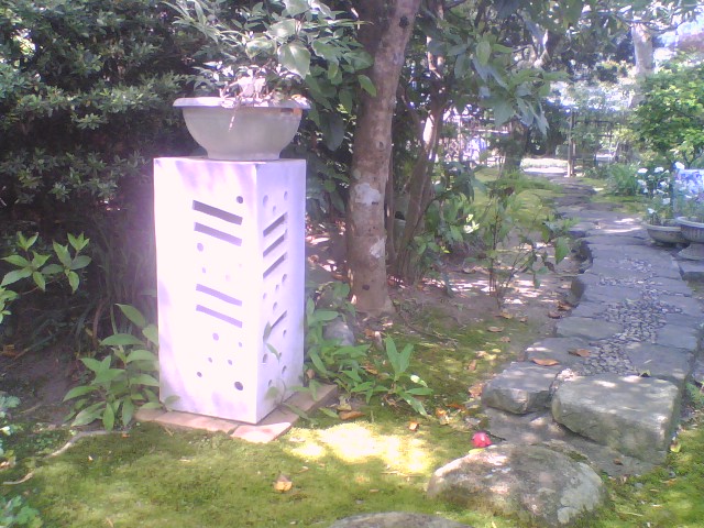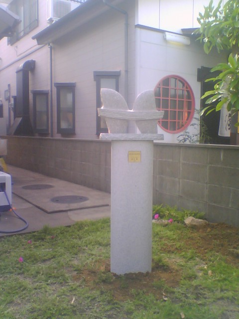 玄関へ向かっていて、敷地内においてある石塔等に混じって、白い陶のオブジェが置いてあるのに気付きました。