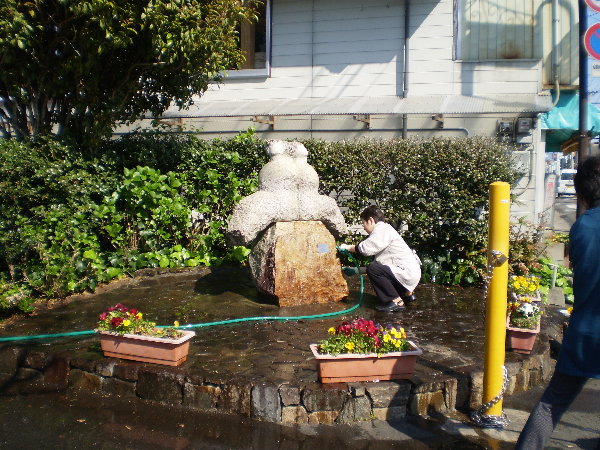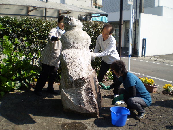 もちろん、設置されている尾崎慎氏の作品も丁寧に汚れを落としました。地区住民の人たちにこんなに大切にされている彫刻はあまりないでしょうね。