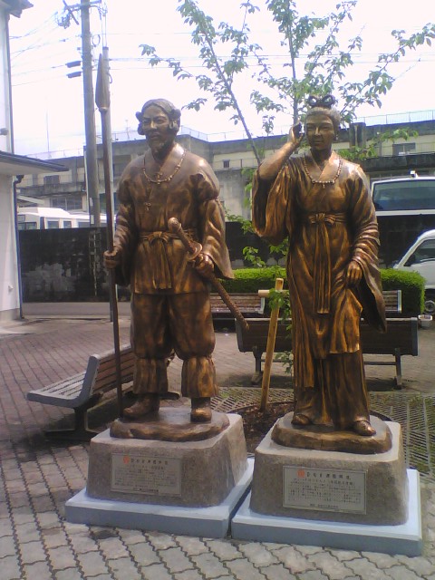 ☆県の商工会議所連合会が設置を進めているひむか神話街道モニュメント像事業で、先日、西都市のあいそめ広場にニニギノミコトとコノハナサクヤヒメが設置されたと言うので見に行ってみました。