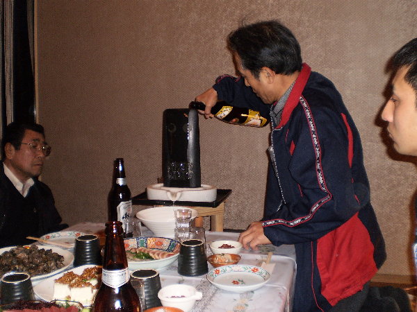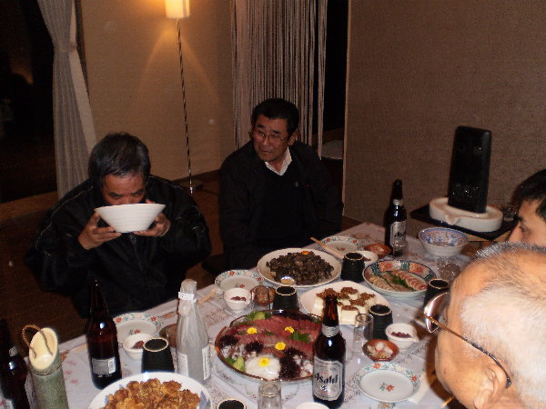 いつもは講宿で”刺身”、”酢の物”、”煮豆”の3点セットを食し、その後2次会へ座を移して本格的に呑むのですが、今回は新居披露も兼ねていますので講宿でゆっくり腰を据えて宴を持ちました。