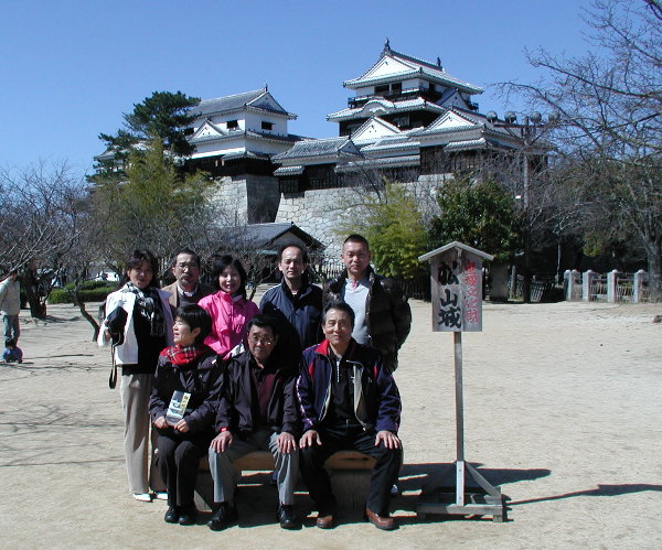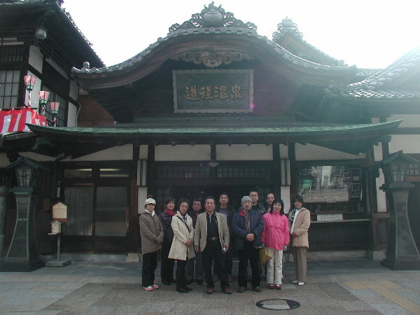 ホテルを出て、道後温泉本館の前で記念撮影です。