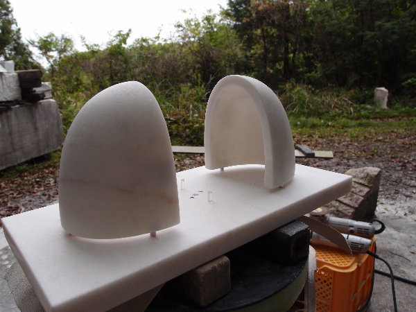 この大理石はエッジがぼろぼろに崩れるリンカーンホワイトなので、エッジに瞬間接着剤を染み込ませながらの作業となります。