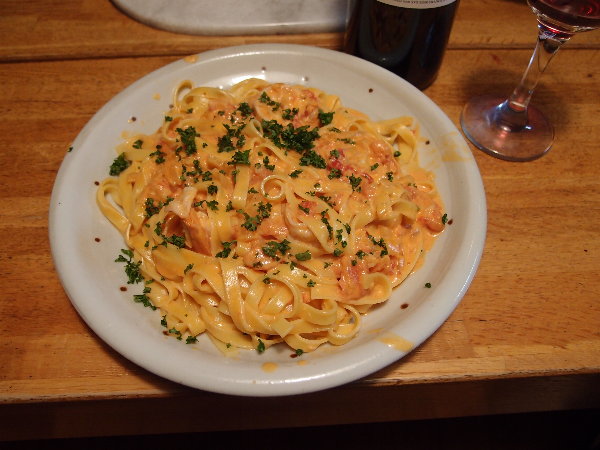 海老&ガーリッククリームのフィットチーネ。