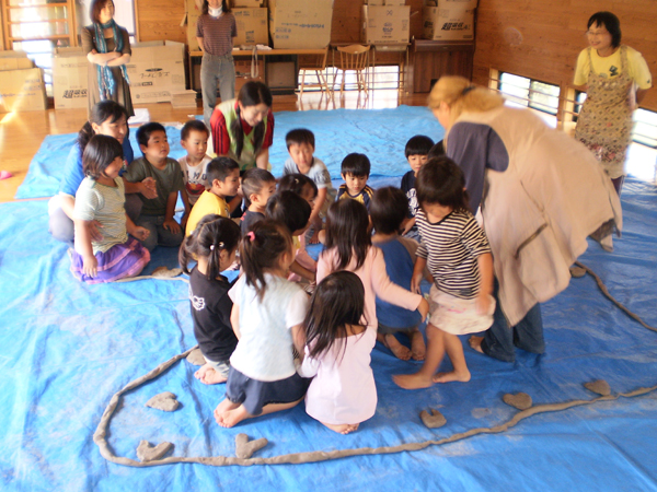 ☆今日の午前に近くの「のゆり保育園」で4年前に引き続いて園児たちへの粘土によるアートセラピーを行いました。