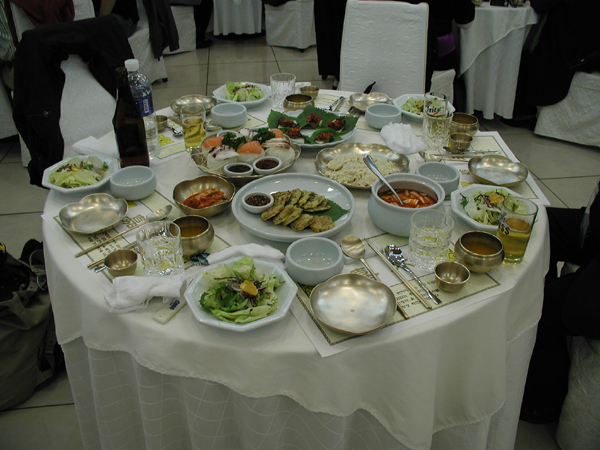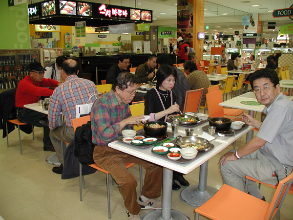 清州へ戻り、昼食は陣教授(下右)のアトリエの隣のレストランでした。