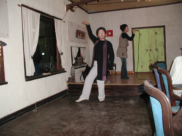 長崎の[ima]展にも招待出品されたことのある作家のカラオケに合わせてのパフォーマンス。音楽が自然に血管の中に入ってきて体が動くのだそうです。