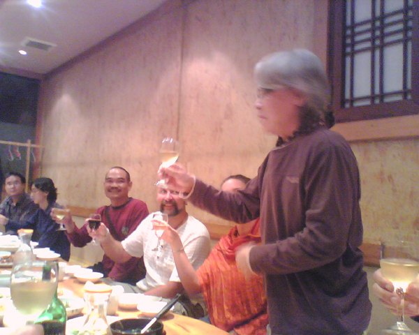 それで私は韓国語で”イルボネ ソオン タナカ ラゴ ハムニダ(日本から来た田中といいます)”と挨拶しましたら拍手喝さいでした。