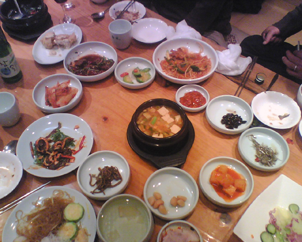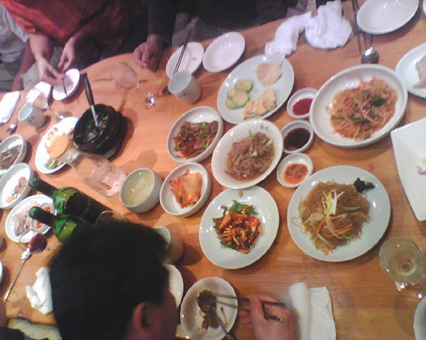 料理の数が多いのが韓国式料理の特色です。次から次に出てきます。思ったほど辛くありませんでした。韓国ワインも美味しかったです。