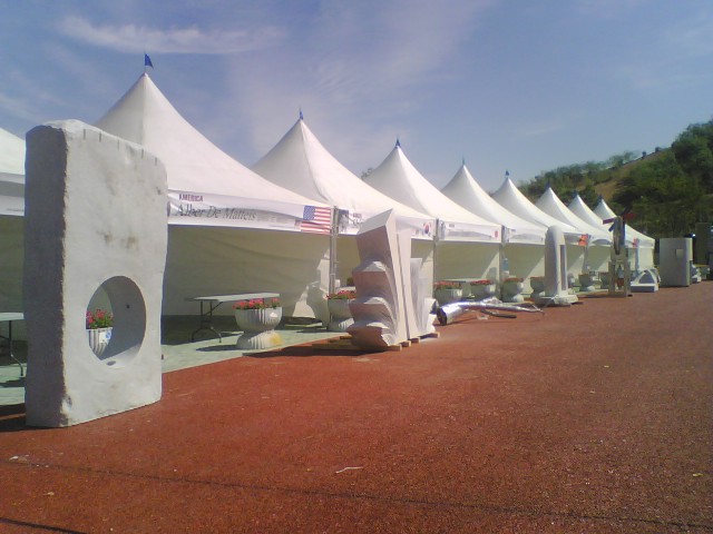 この教会の前でJanは石を彫り、Slavaは教会内で陶芸作品を作り、2人シンポジウムを開催します。