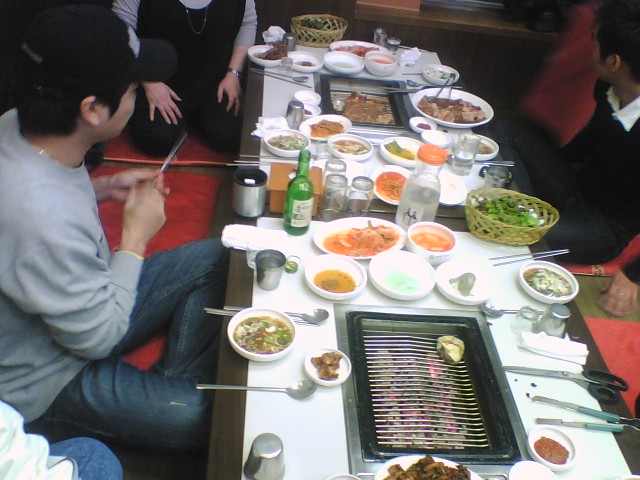 夕食はお決まりのカルビー。韓国の人たちは本当によく食べます。