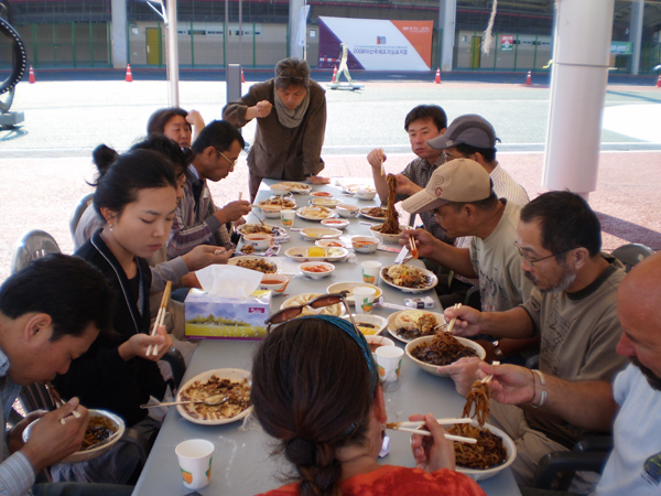 ようやくオルガナイザーのHeung Sub Yunがやってきて、今日は予定変更で午後からFolk Villageへ行って夜は市長との晩餐会だといいます。