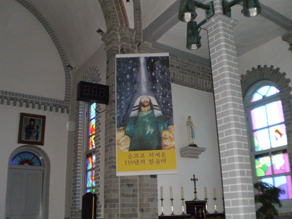 帰りに貢税里聖堂という教会に立ち寄りました。忠清道で2番目に長い歴史を持っている聖堂だそうで、迫害を受けた歴史の資料館がオープン前でしたが、見学させてもらえました。