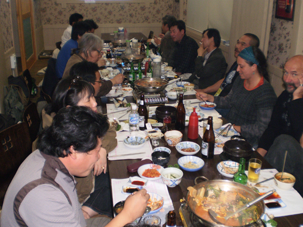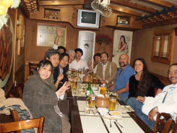 ホテルにチェックインして直ぐに近くの韓国式小料理屋で作家とスタッフの顔合わせ歓迎の宴でした。