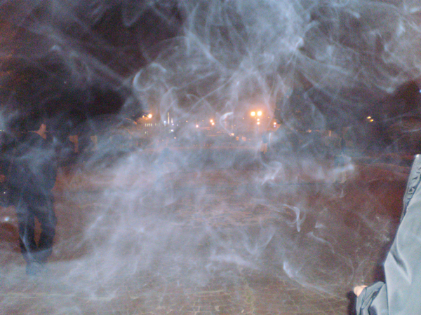 上の写真にものすごい数の丸い玉が写っています。この舞台方面を撮った写真にはほとんど同じような丸いものが写っていました。(一つ前の踊っている写真にももう写り始めています)