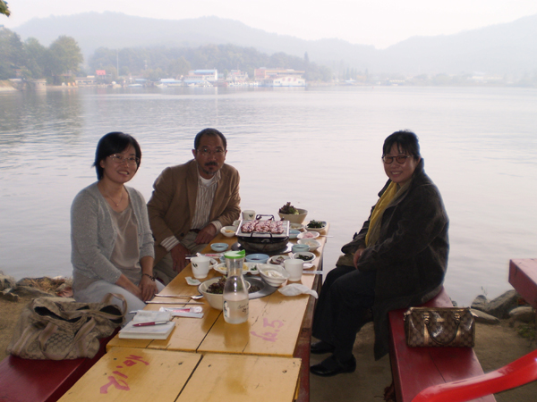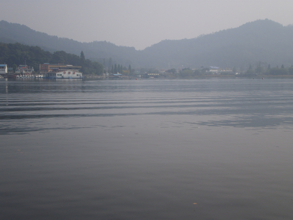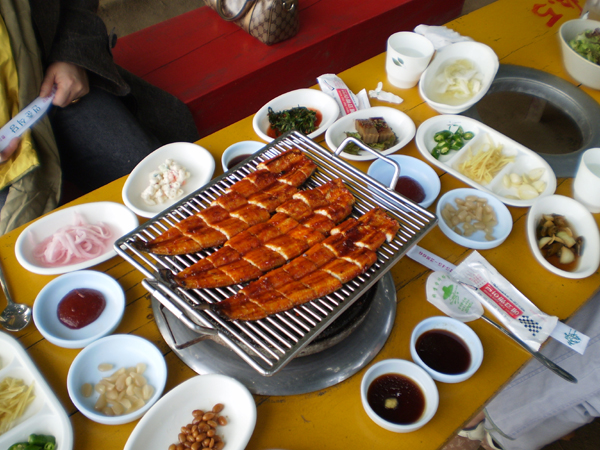 先日、天安に迎えに来てくれた女性の車で昨夜のあのものすごいエネルギーのあふれる湖畔公園の対岸のウナギ屋に連れて行ってくれました。