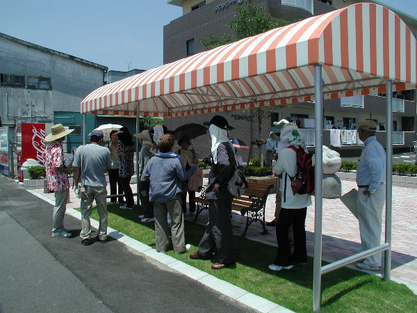 千手さんのポケットパークも、道路拡張に伴い、高鍋藩時代から続いてきた老舗の菓子舗をたたまれてマンションに建て替えられたときに、町民のためにと私有地を公共空間として提供されたものです。