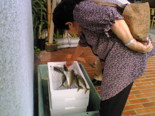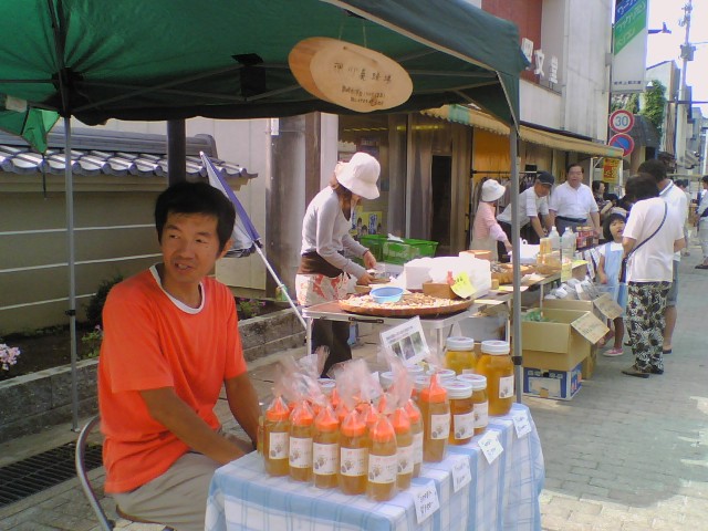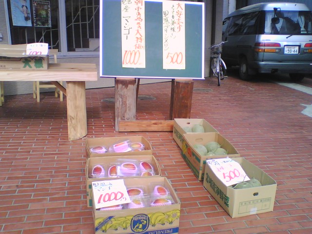 お客も昨夜の祭りの疲れや真夏の朝の陽射しにうんざりしてかまばらな人の出でした。