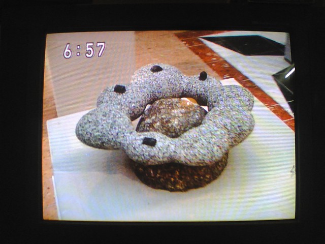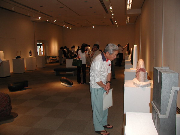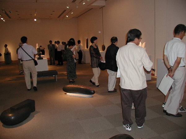朝一に東京から写真家の藤田観龍氏が来られました。8月刊行予定の全国の屋外石彫作品の作品集の最終校正に入っておられますが、在るトラブルが生じて鹿児島の作家の作品を急遽差し替えなければならなくなり、その差し替え作品の撮影がてら、私の個展会場を訪ねていただきました。