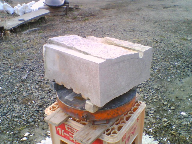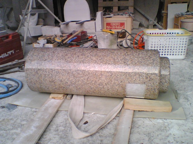 ☆今日は石材店の霊標の仕事と、枕崎の作品の取り付け加工作業、そして明後日までにデーターを提出しなければならない”美術展2008[ima]長崎”の作品の寸法だしのための荒落とし作業でした。