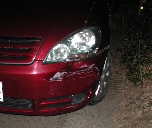 この妻の車はこれで相手からぶつけられたのは3度目です。