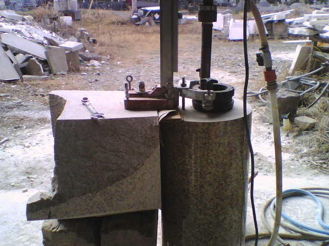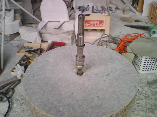 コア穴を開けるのに難儀したのは、ルートハンマーの穴が垂直に開いていなくて、ハンマードリルの刃が斜めに差し込まれてしまったので、コアのダイアモンドチップが石だけでなくドリル刃をも削っていたからでした。