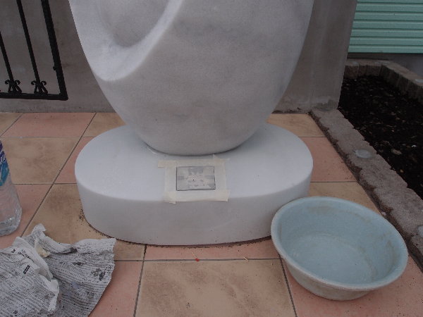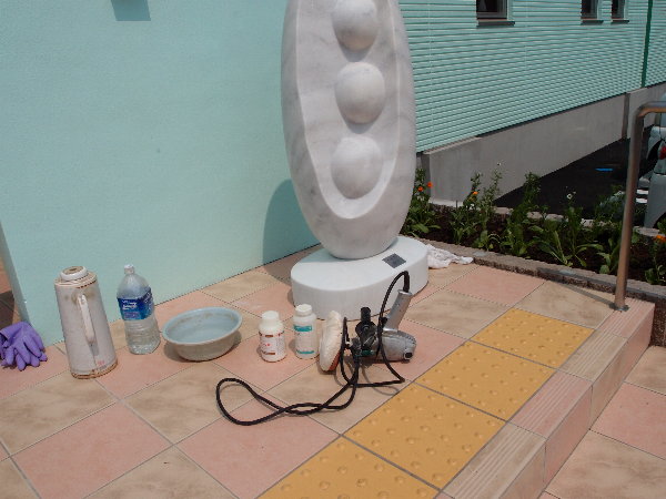 ”しゅう酸”が手に入ったので、昨日、保育園モニュメントの仕上げ作業をしました。