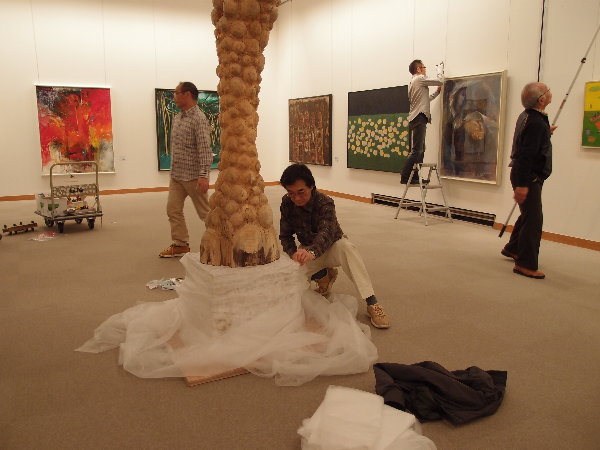 これは杉尾幸さんの作品ですが、日中は勤務中で搬入できないので、アートスペース色空の川添氏に設置作業をしていただきました。