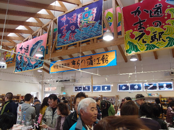 蒲江は港町です。道の駅には豊富な海産物が並んでいます。