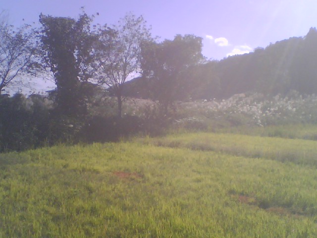 (稲田の黄金色の輝きとススキの白銀の輝きが美しかったのですが、私の携帯の画像は明るい色はハレーションを起こしてほとんど色と形が飛んでしまい残念ですね。)