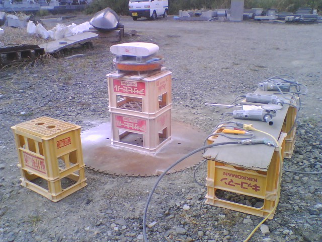 それで外で制作できる方策を考えて、大口経のノコの刃を使って水平な場所を作って、そこで制作をしていくことにしました。