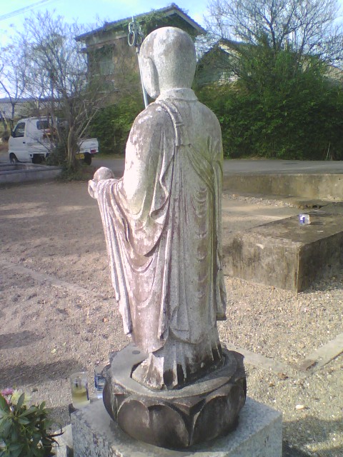 世に出回っている地蔵像の類は、この法衣の構造がいい加減であり、背面はほとんどのっぺらぼうでごまかしてあります。多分、法衣の構造がわからないからです。
