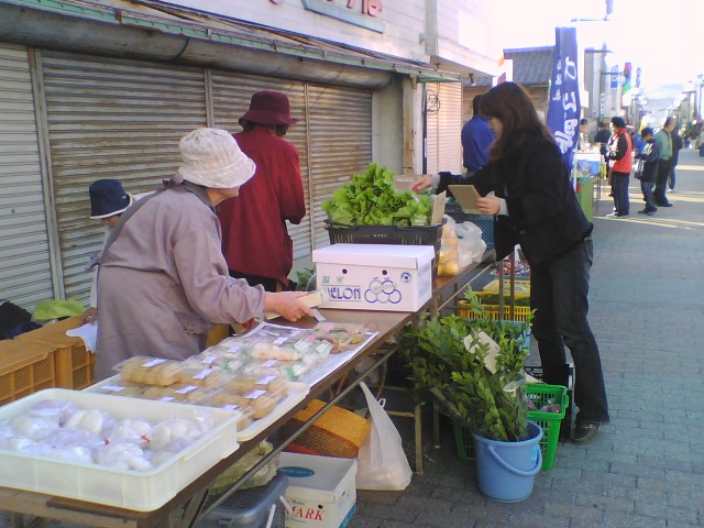 まだ朝市開始のころの画像なのでお客はまばらです。