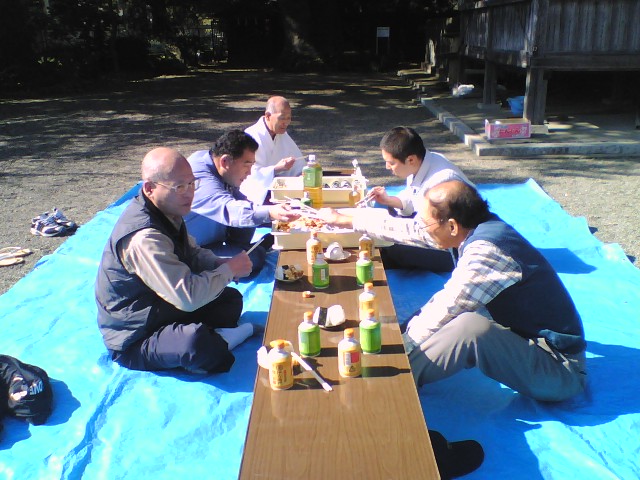 再び火産霊神社に戻って、境内で直会(なおらい)です。
