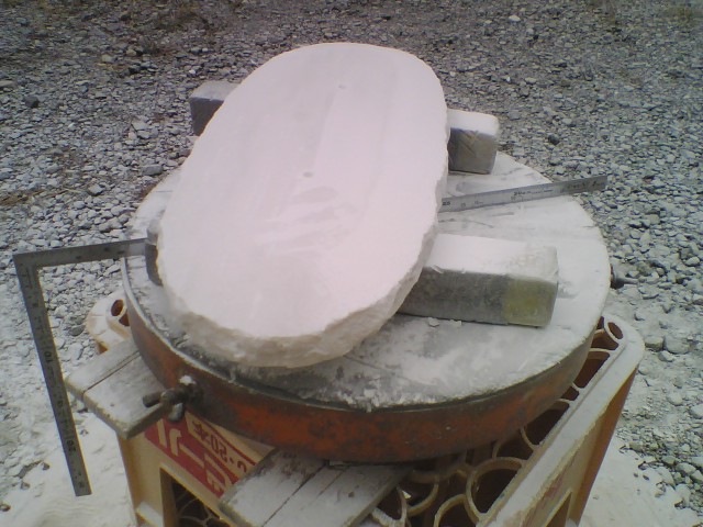 昨日から手がけた石が、上部に傷が出てきました。削岩機で割るときに出来る”起き”傷です。